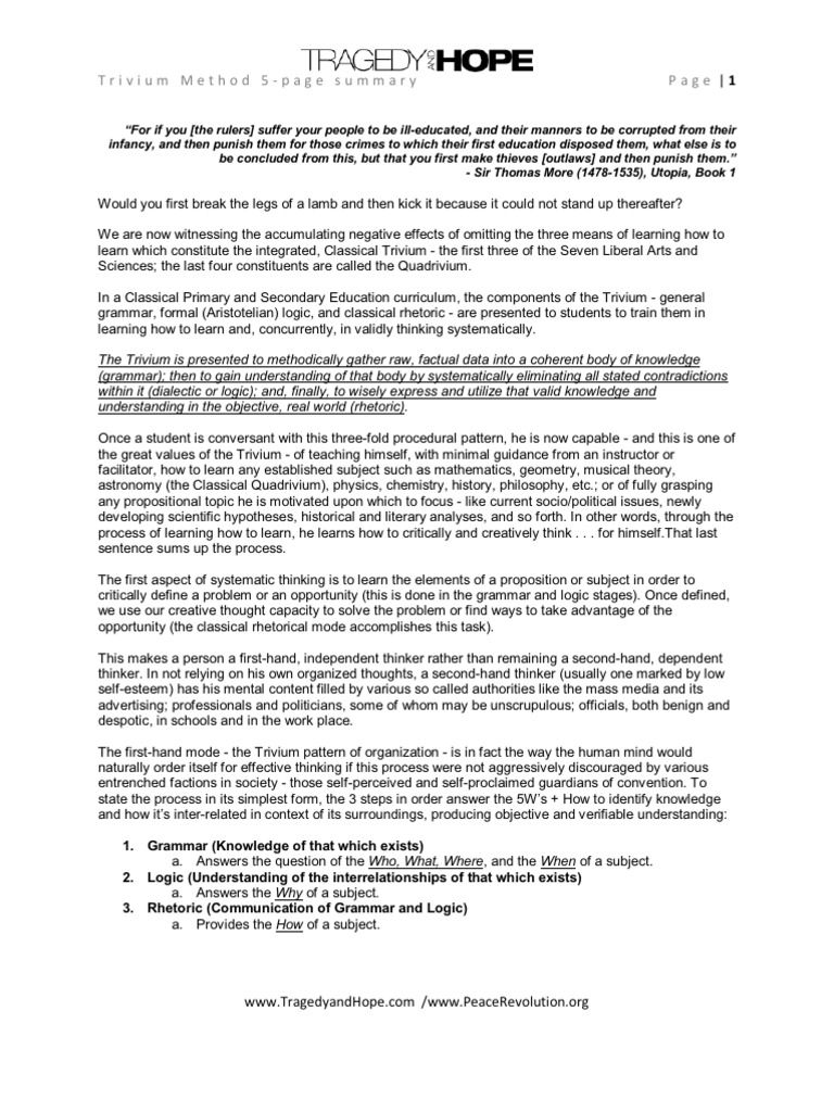Trivium The Classical Liberal Arts Of Grammar Logic Rhetoric